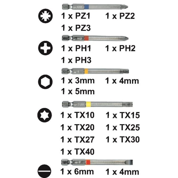 - 18 lange bits van silicium-molybdeenstaal (S2) in professionele kwaliteit