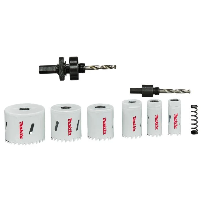 9-delige Makita gatzaagset BiM bestaande uit gatzagen in diameters 19/22/29/38/44/57mm, adapter met centreerboren 9.5/11mm en een uitwerpveer.