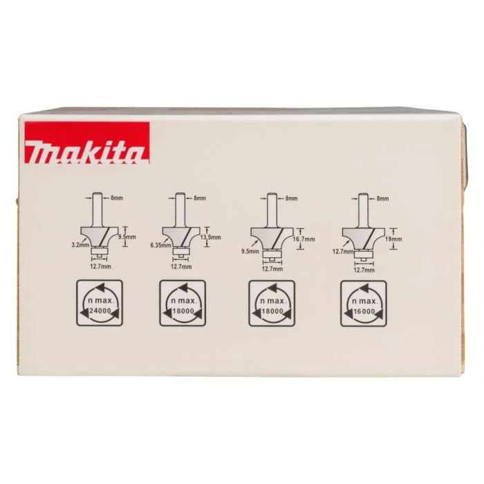 4-delige Makita afrondfrezenset met schachtdiameter 8mm met kogellager.