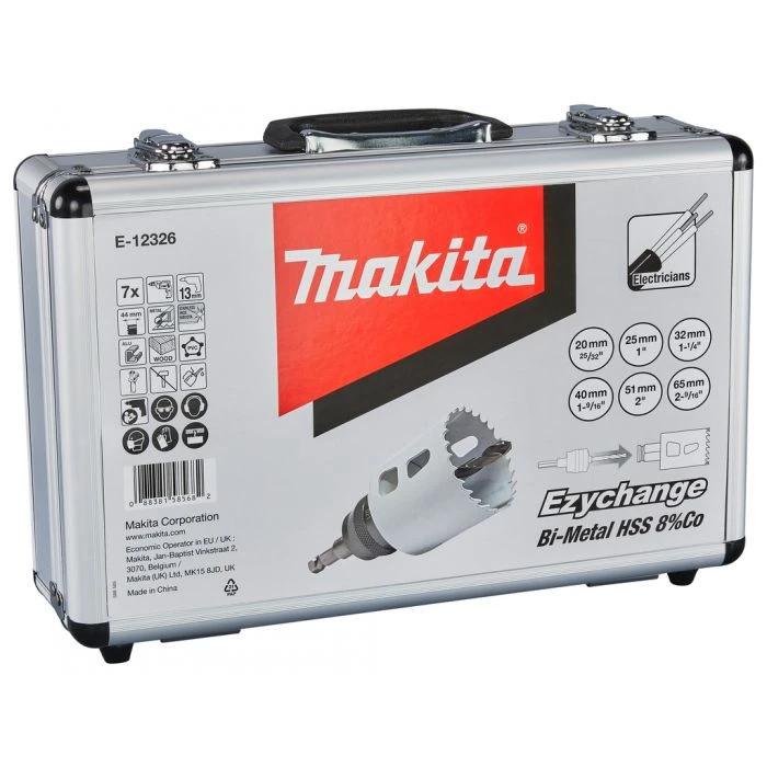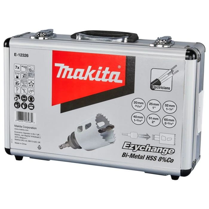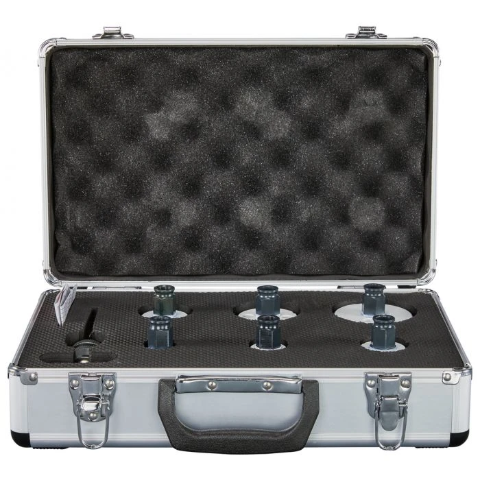 7-delige gatzaagset BiM in aluminium koffer, bestaande uit gatzagen in diameters 20, 25, 32, 40, 51, 65 en een diepte van 44mm.