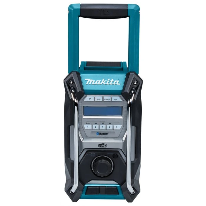DAB weergave: zendernaam, programmatype, multiplexnaam, tijd/datum, frequentie, bitsnelheid/audiotype en signaalsterkte.