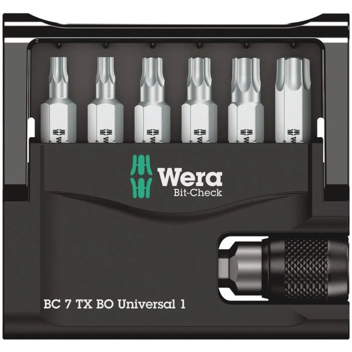 Robuuste Bit-Check van Wera. Bij Bit-Checks heeft u steeds een goed overzicht over het beschikbare gereedschap. Bits die niet nodig zijn voor de werkzaamheden, kunnen in het assortiment worden teruggeplaatst en raken zo niet kwijt. Eenvoudig mee te nemen, bijv. in een borstzak. Inclusief universele houder geschikt voor plaatsing van bits met 1/4″ buitenzeskant-aandrijving conform DIN ISO 1173-C 6,3. Met snelwisselfunctie om snel bits te kunnen wisselen. Inclusief extreem harde TORX® BO bits voor veiligheidsschroefbevestigingen, voor universeel gebruik.